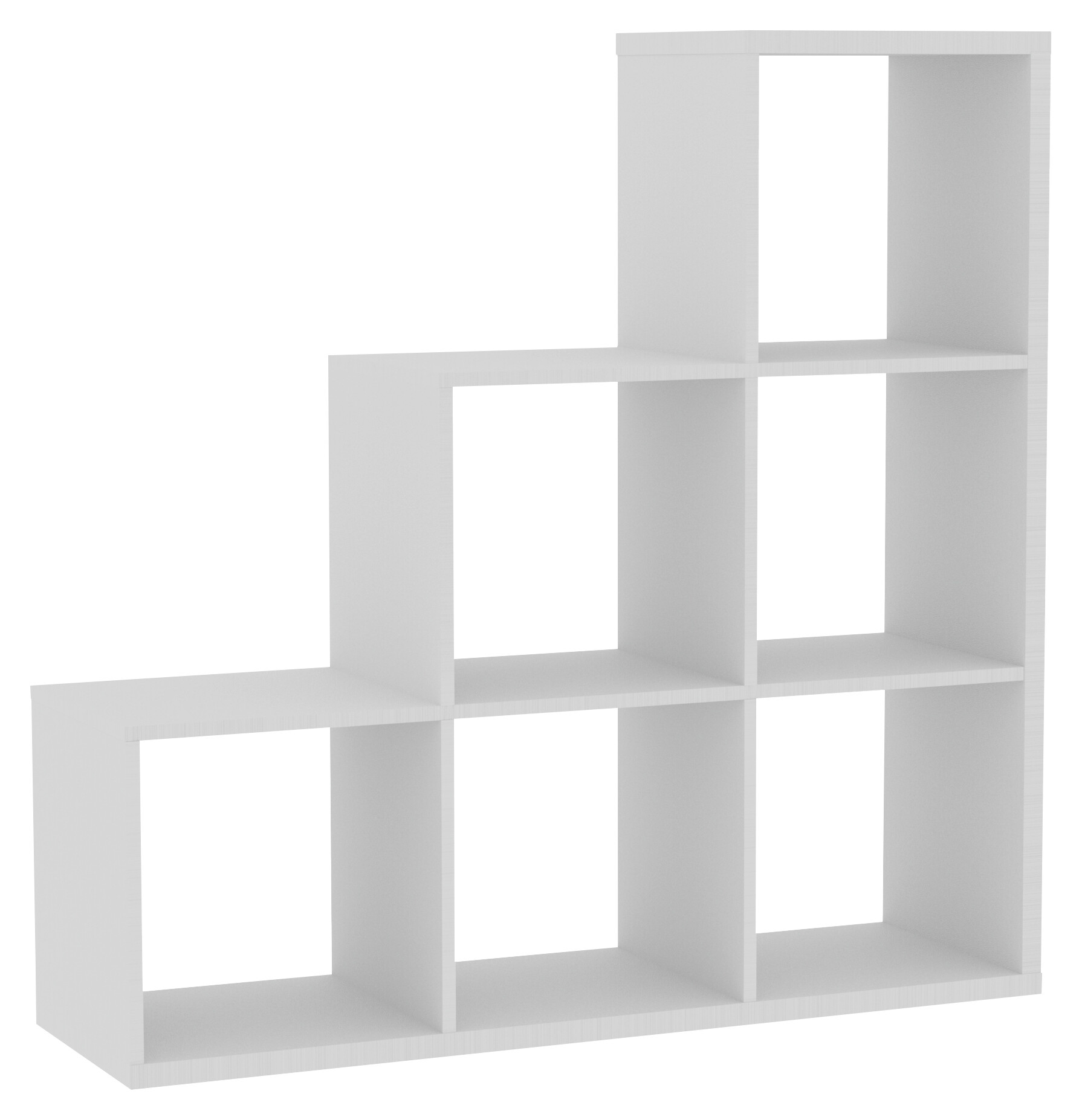 Dieses praktisches Stufenregal ist ohne Rückwand gestaltet und eignet sich ideal als Raumteiler oder als offenes Stauraumelement in Wohnzimmer, Büro oder Flur. Die Regalfächer bieten Platz für Boxen bis ca. 31 x 31 x 31 cm (B/H/T) und schaffen so Ordnung bei gleichzeitig dekorativer Präsentation.