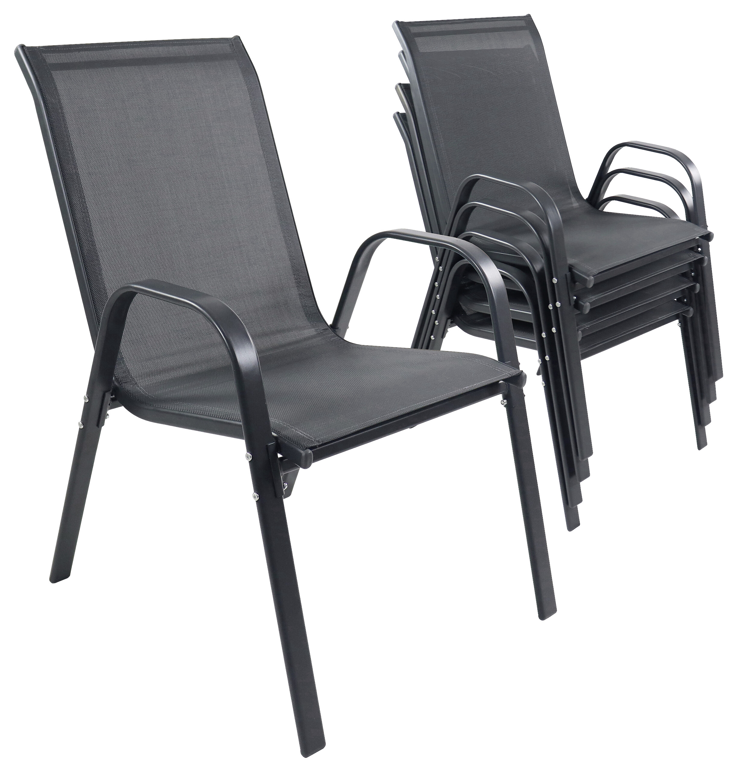 - Stuhl kann platzsparend aufeinander gestapelt werden