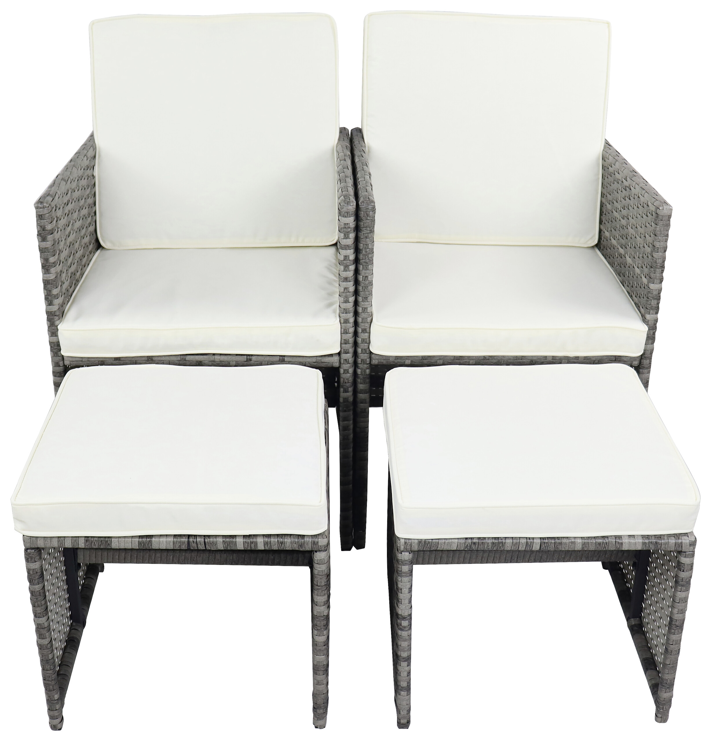 - Set mit 2 Stühlen, 2 Fußauflagen inkl. cremefarbener Polster