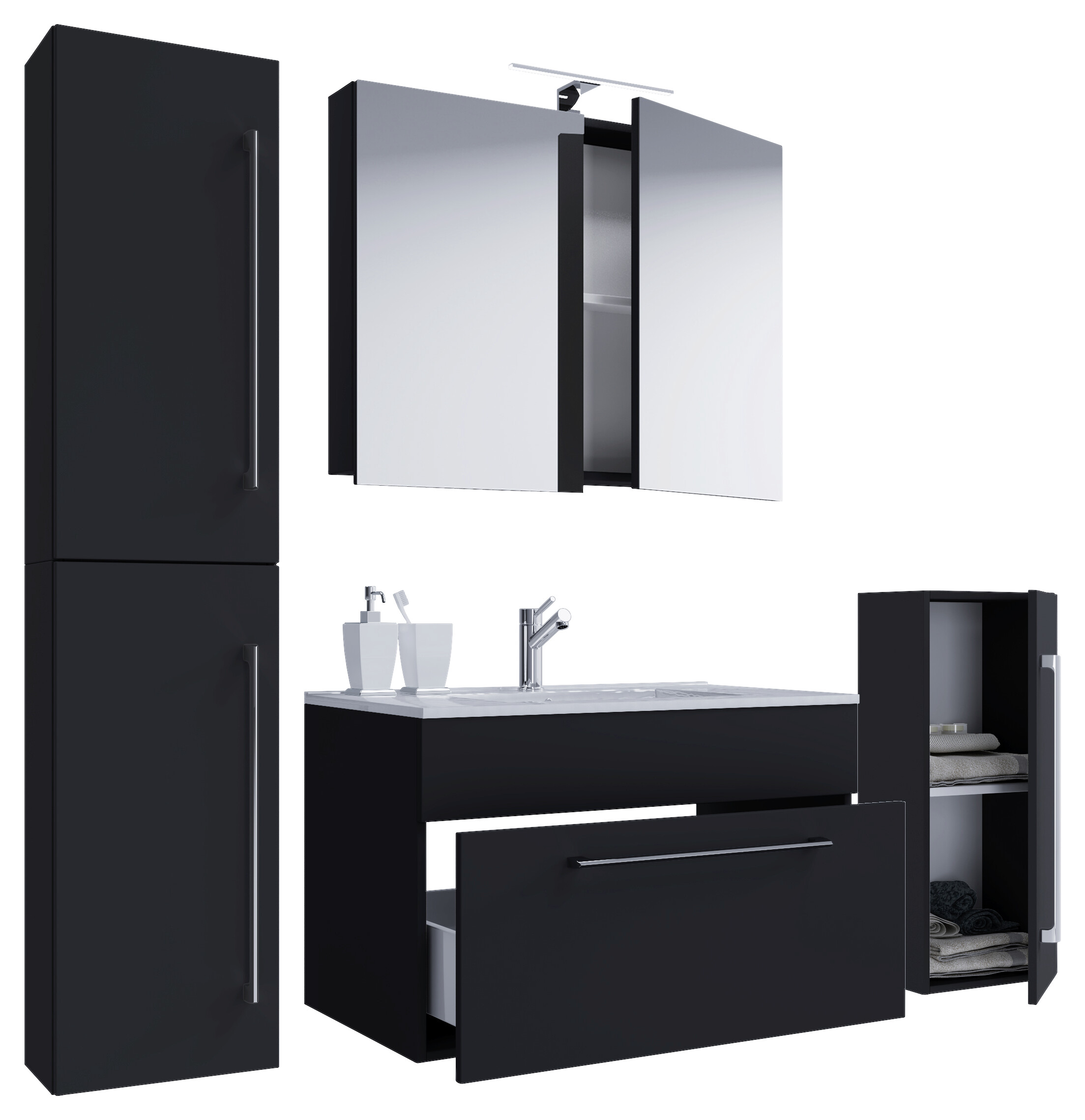 Waschplatz 5tlg-Badinos schwarz B/H/T: ca. 60x50x46 cm