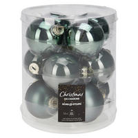Mit diesem edlen 12er Set Glaskugeln bringst du klassischen Weihnachtszauber in dein Zuhause. Die Kugeln mit einem Durchmesser von ca. 6 cm in Grün verleihen jedem Baum eine elegante festliche Note.
