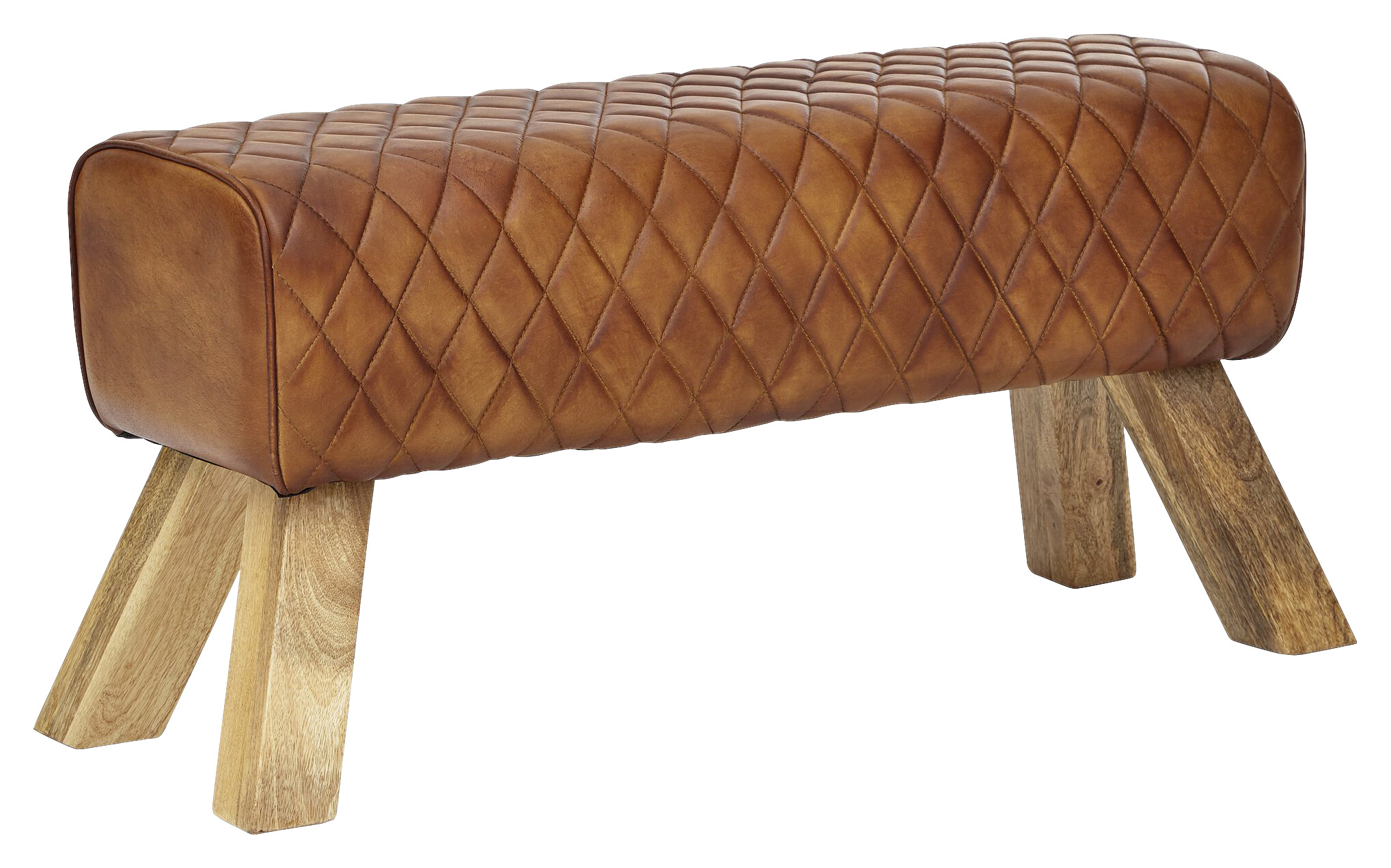 MATERIAL: Der Sitzflächenbezug besteht aus echtem Ziegenleder. Die Standfüße der Bank sind aus massivem Mango-Holz gefertigt.