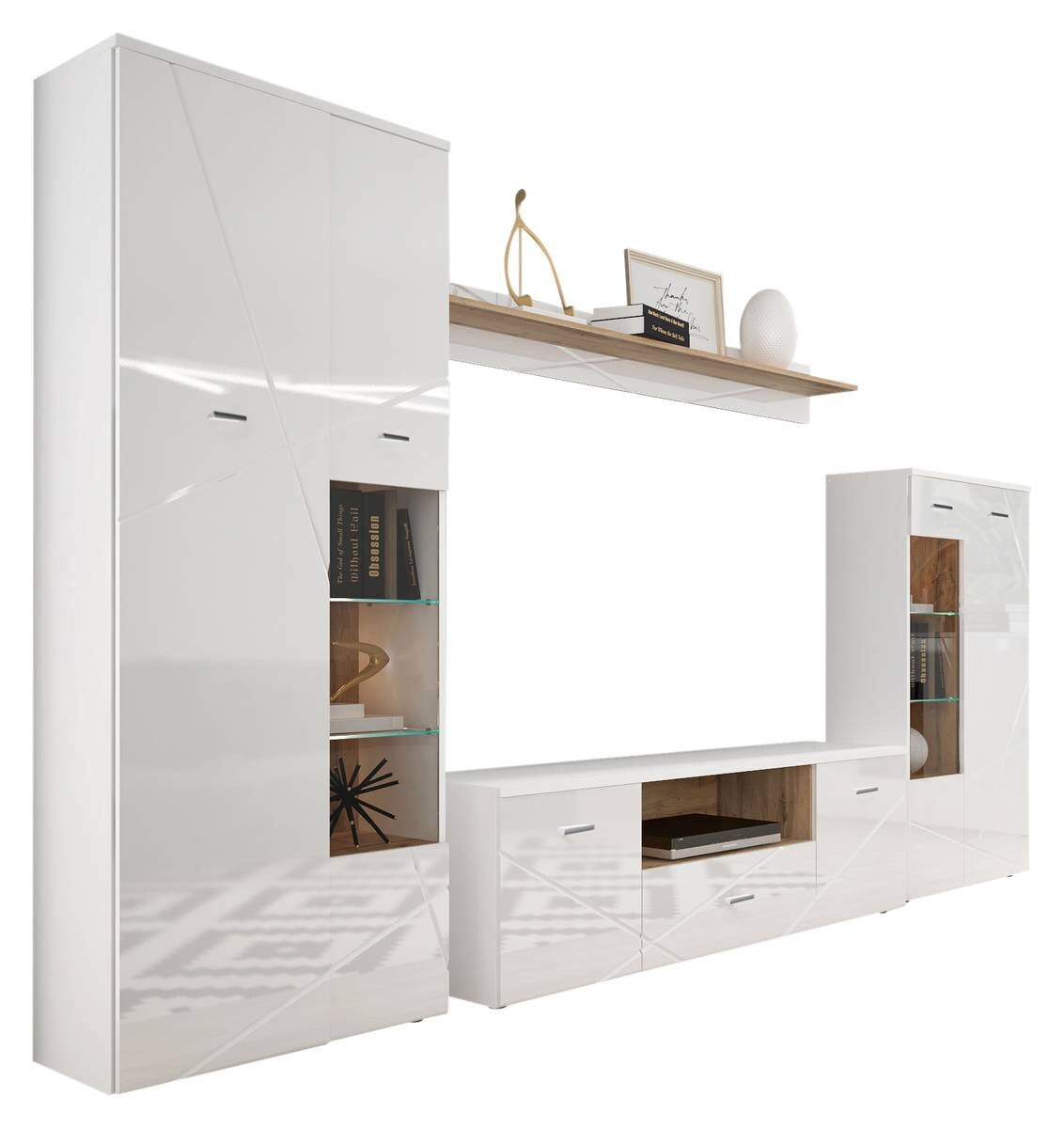 Wohnwand Storm weiß weiß Hochglanz Wildeiche Nachbildung B/H/T: ca. 340x196x40 cm