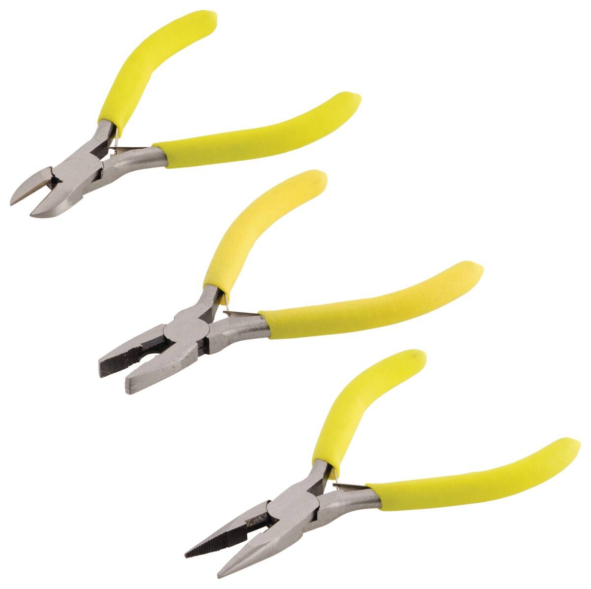 - 3-teilig, bestückt mit drei Elektronikzangen (Kombizange, Seitenschneider, Spitzzange)