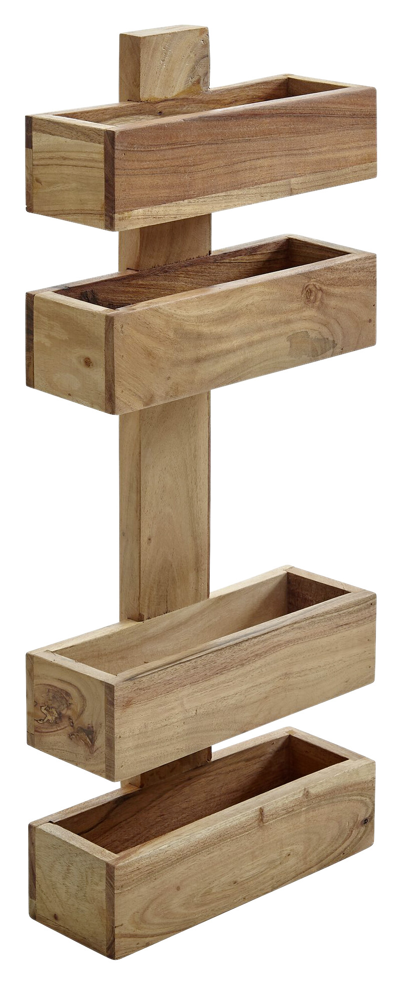 Moderner Zeitungshalter aus massivem Holz Akazie - 2 Ablagefächer und 2 Halterungen - Montagematerial für Wandhalterung inklusive