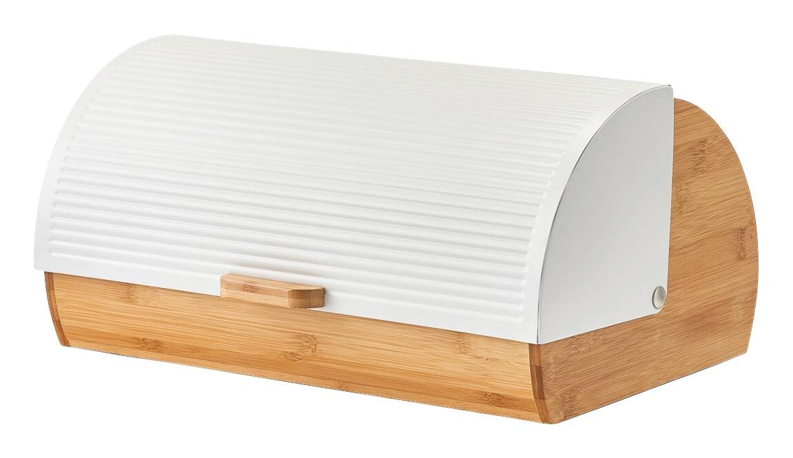 Dieser moderne Brotkasten aus hochwertigem Bambus und robustem Metall ist mehr als nur ein optisches Highlight in Ihrer Küche. Der Kasten selbst besteht aus umweltverträglichem und pflegeleichtem Bambus und der Deckel aus Metall. Dank des praktischen Brotkastens bleiben Ihr Brot und Ihre Backwaren länger frisch und schmackhaft. Die Lüftungslöcher an der Rückseite des Brotkastens sorgen für eine ausreichende Belüftung und schützt den Inhalt vor Schimmelbildung. Mittels des integrierten Griffs lässt sich der Brotkasten einfach verschließen und öffnen. Erhältlich ist dieser in zwei verschiedenen Farben