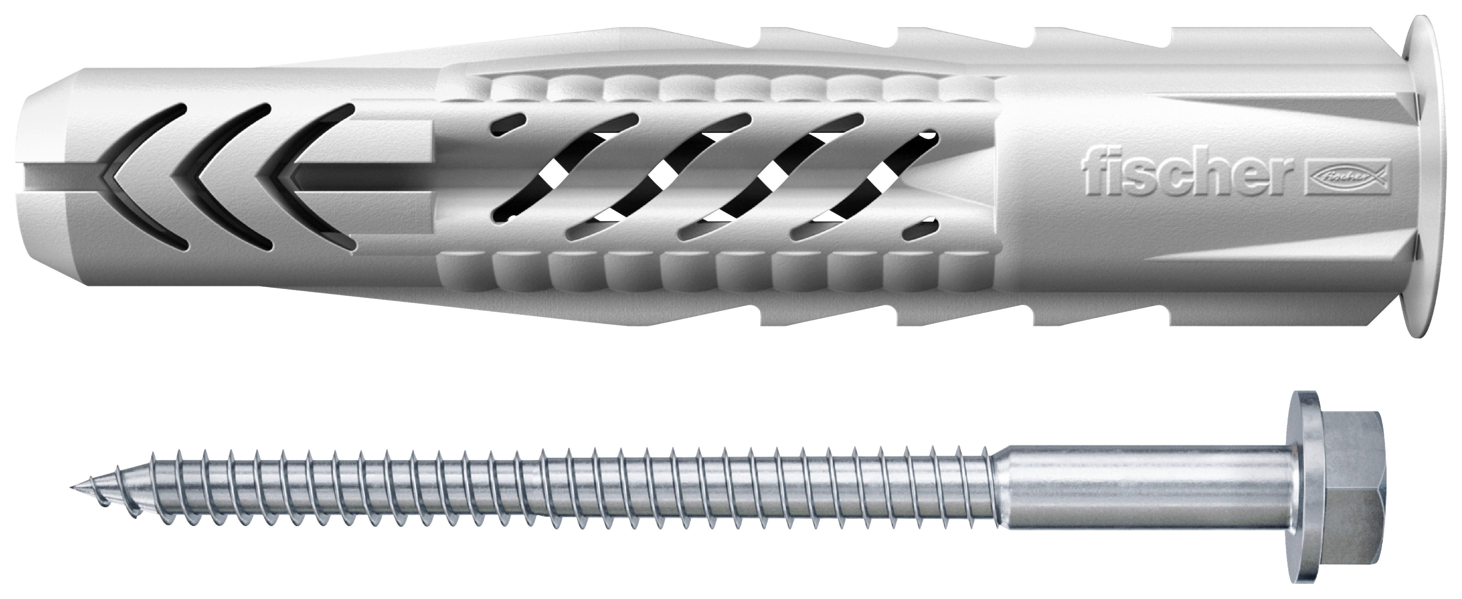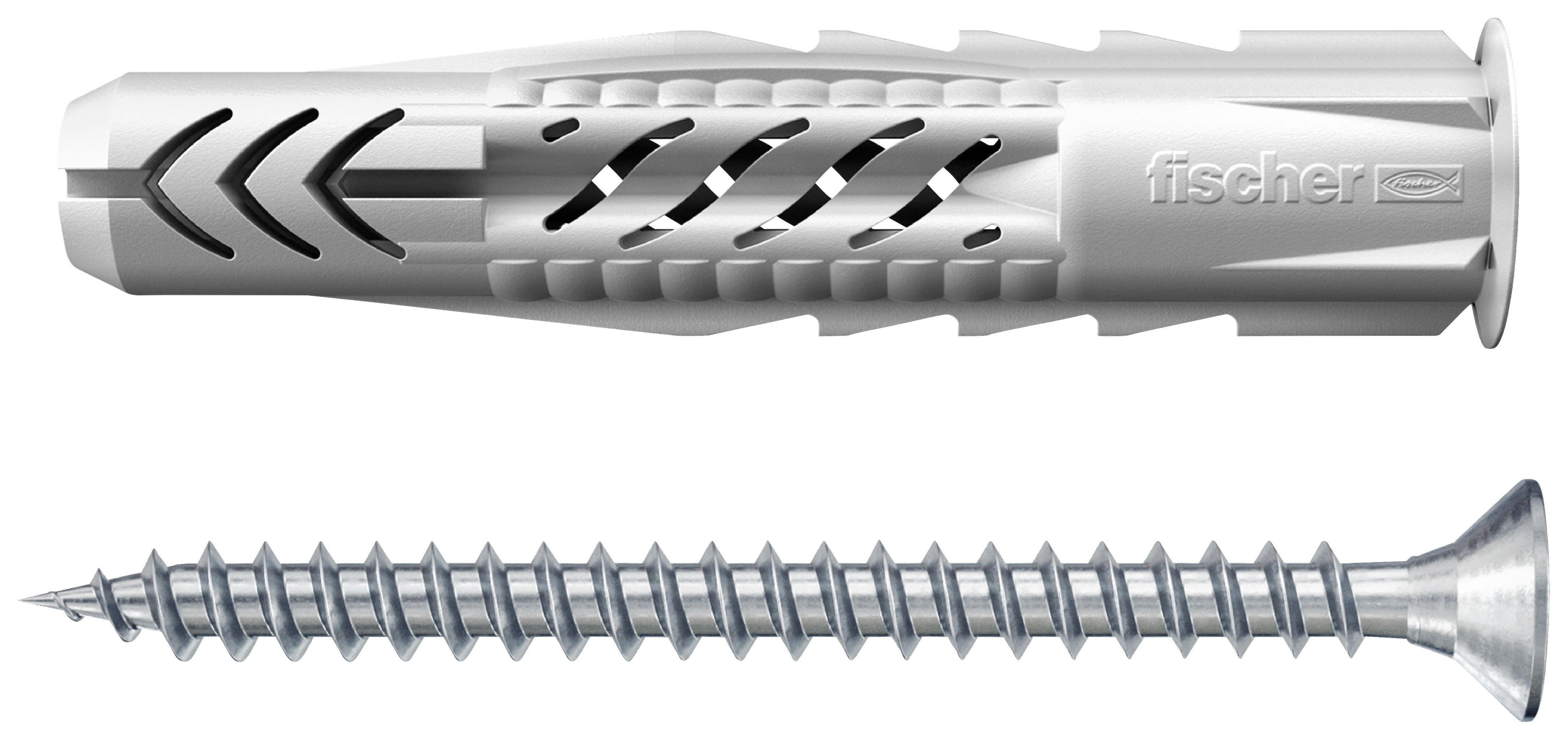- Universaldübel: Wie der Name schon vermuten lässt, ist der Universaldübel ein Allrounder. Er ist ein Kunststoffdübel aus Nylon und kann auf allen Baustoffen eingesetzt werden.